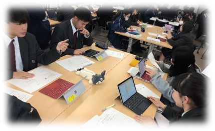 総合ビジネス科では、3年生が1年間取り組んできた※科目「課題研究」の成果を下級生へ伝える場として、毎年「課題研究発表会」を実施しています。今年度も全7講座に分かれた探究活動の成果を、各講座の生徒が